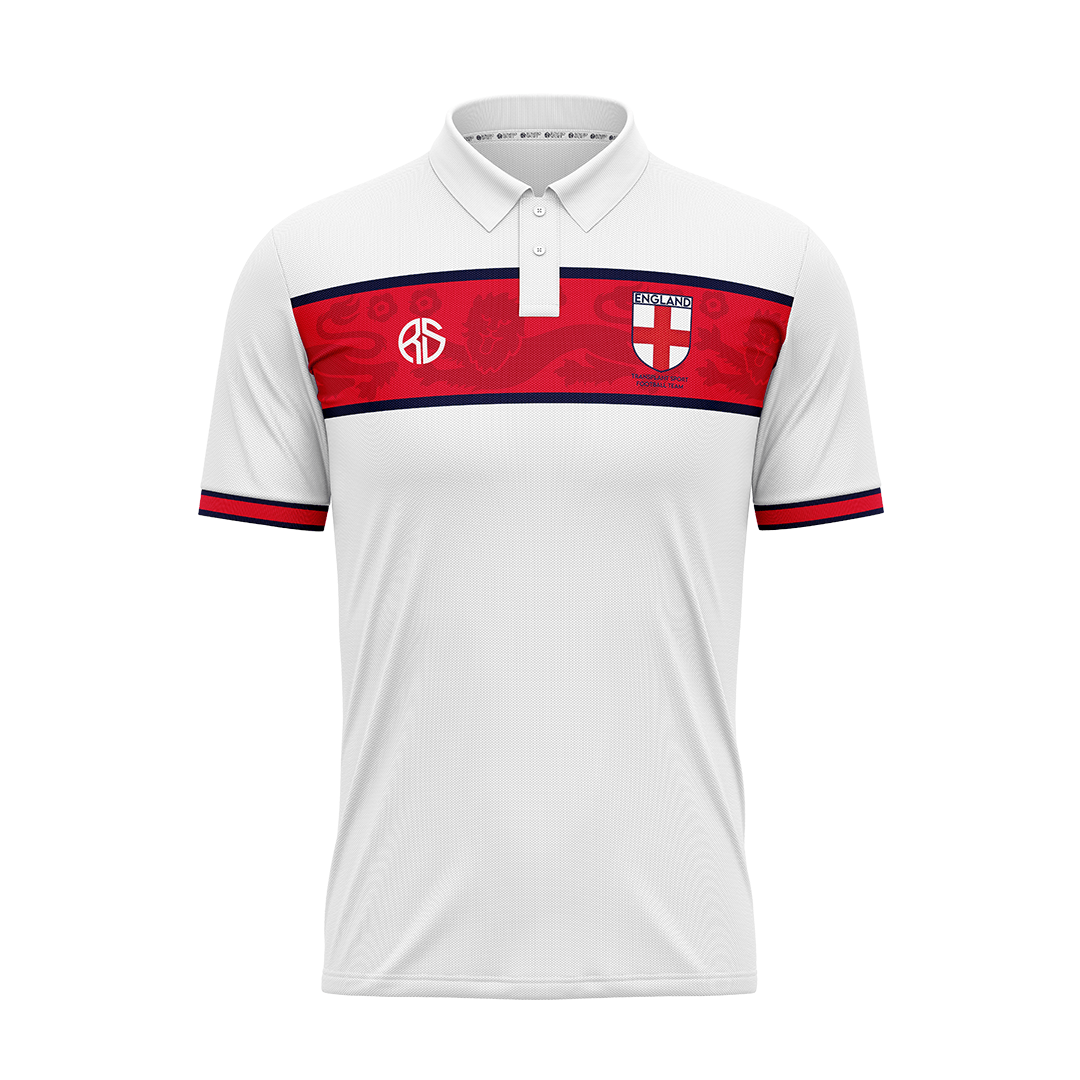 England Transplant Football Coaches Polo Shirt. Made from 100% polyester. Embroidered club logo with sublimated panel across the chest. Add a name/initials ABOVE the ‘RS’ logo for £2.40 Add a squad number under the ‘RS’ logo for £2.40