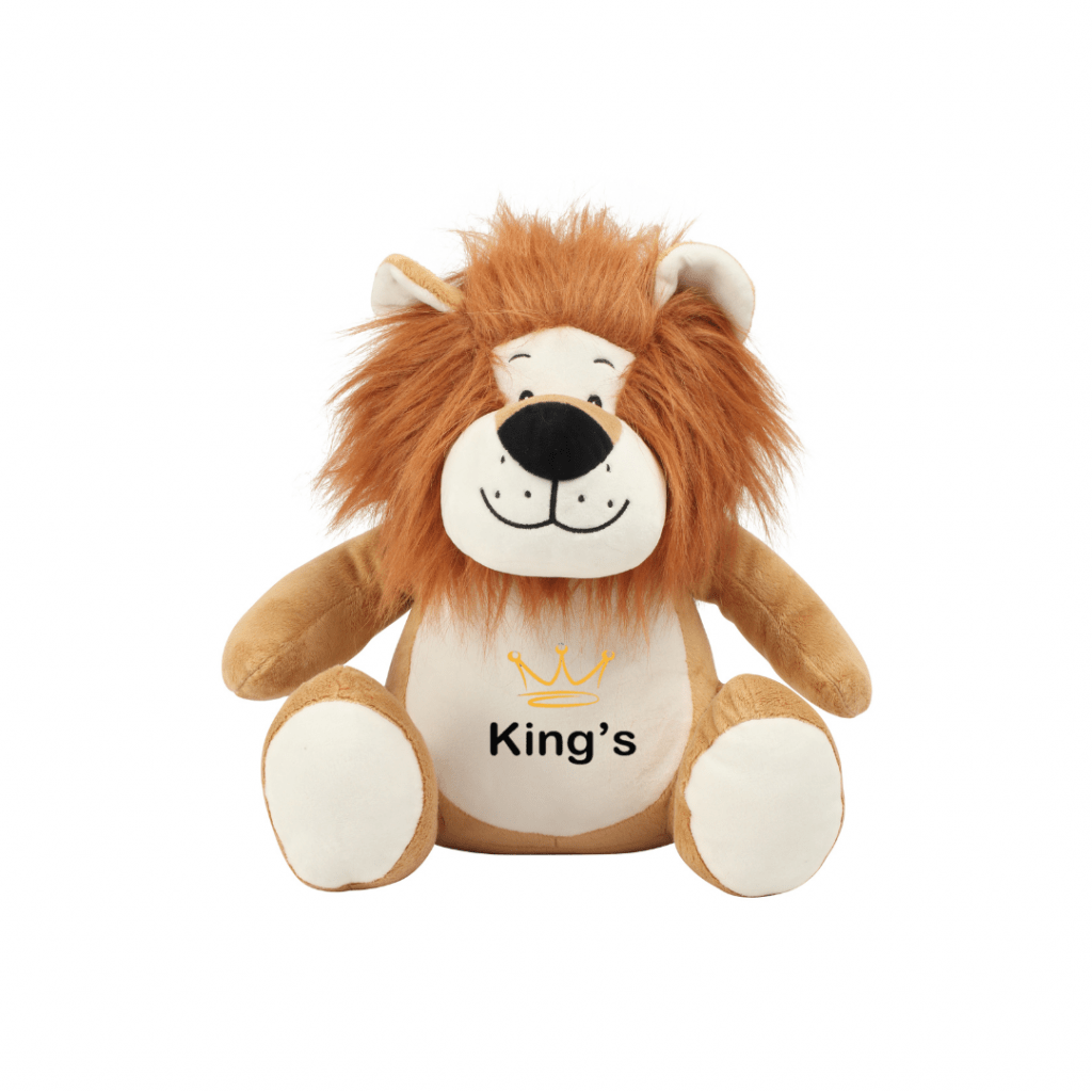 Soft plush Zippie lion. Contrast feet, nose and horns. Sewn eyes and mouth. Contrast mane and tail. Zip access on base for removable inner stuffing. Complies with EN71 European Toy Safety regulations. Remove all hang tags and their fasteners before giving these items to a child. Suitable for all ages. BSCI certified. SEDEX certified.