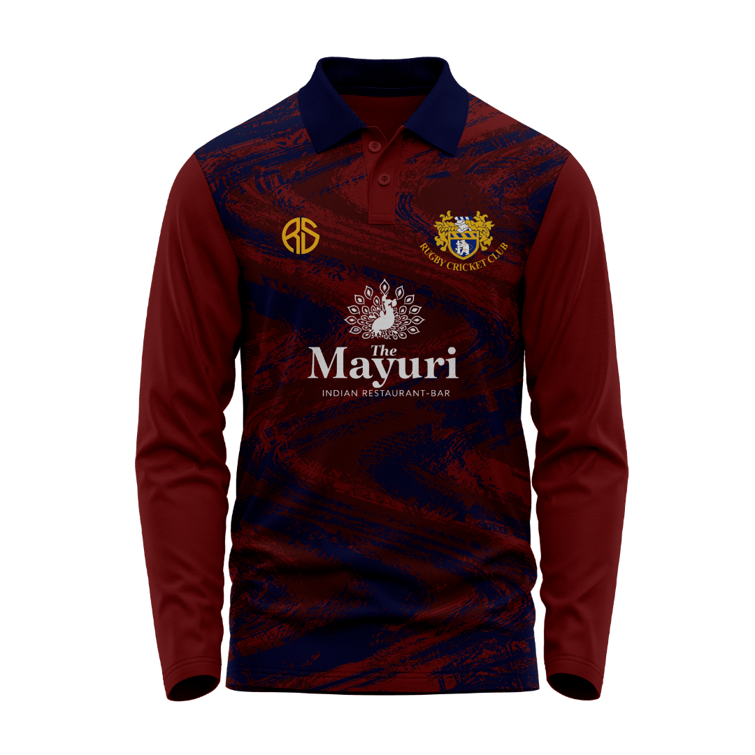 ITEMS FOR VISUAL PURPOSES ONLY. Rugby Cricket Club Alternate Playing Shirt Long Sleeved. Fully Sublimated names, numbers, and sponsor logos. Made from dot-mesh polyester. Embroidered club logo.