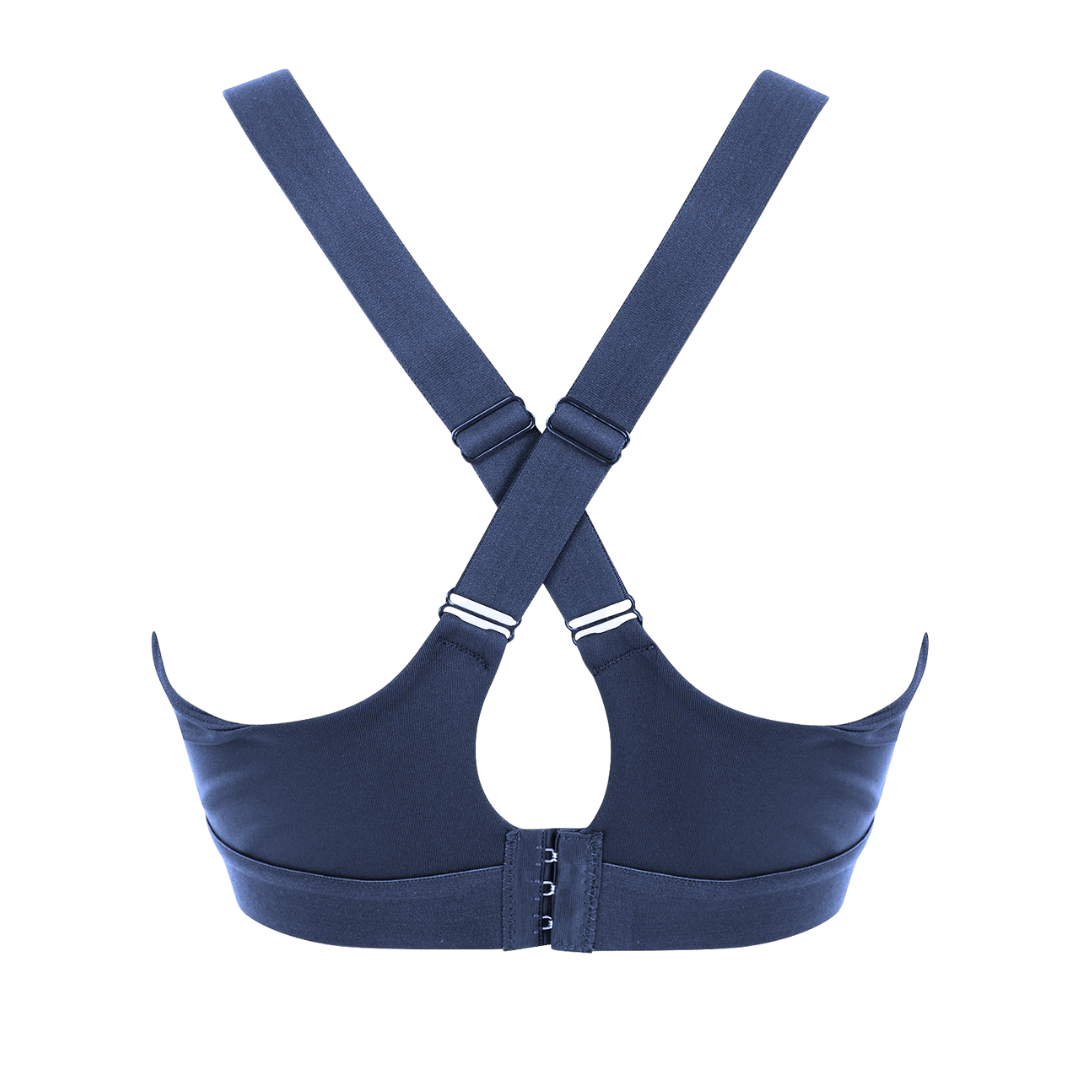 Women’s core bra with medium impact. Round neckline with cross over elastic strap back. Bra clasp fastening. Permanent cups, non removeable. Tear-out label.